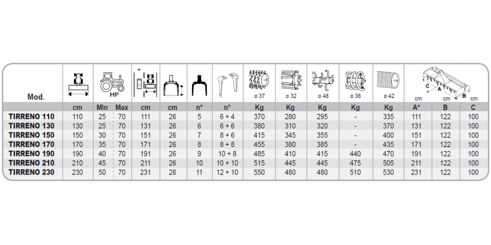 | TIRRENO 190 | 190 | 40 | 70 |