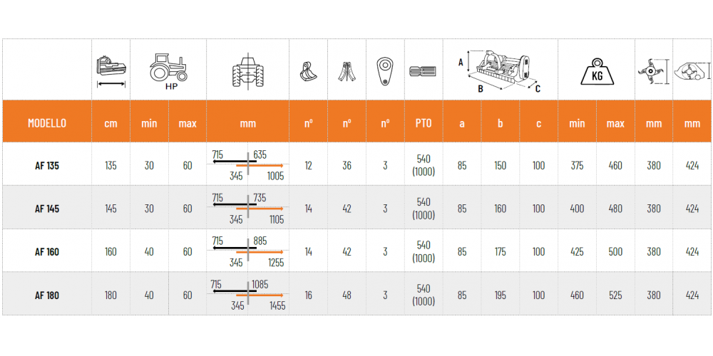 | AF 135 | 135 cm | 30 | 60 |
