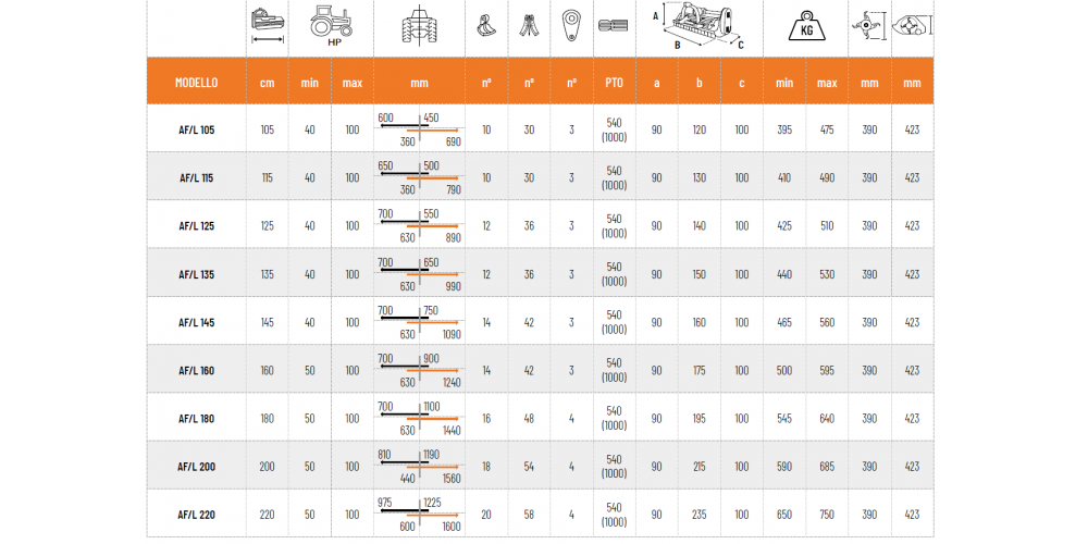 Szőlőültetvények és gyümölcsösök karbantartására ajánlott szárzúzók 105-200 cm munkaszélességben- Alkalmas 5-6 cm átmérőjű gallyak, venyigék, fás szárú növények és egyéb növényfélék zúzására. Teljesítmény igénye 40-80 Le.