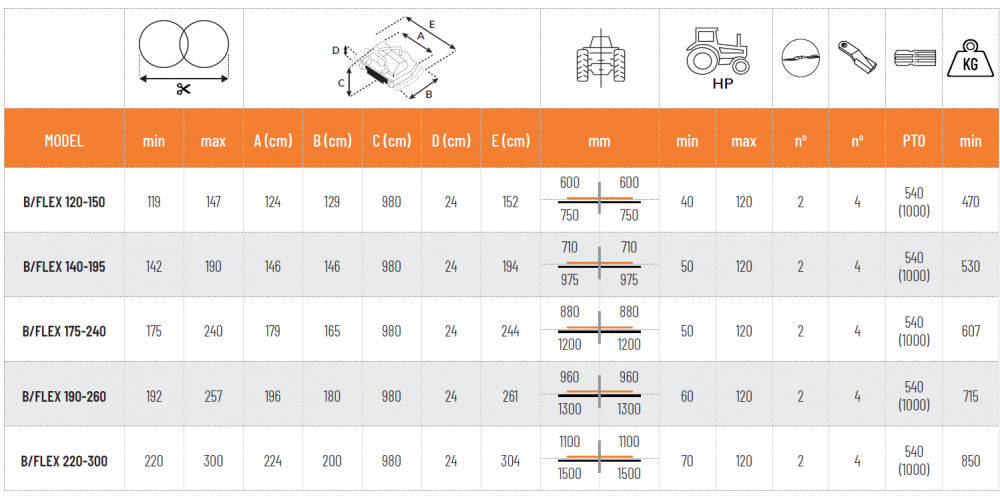 | B-FLEX 175-240 | 175 cm | 50 | 120 |