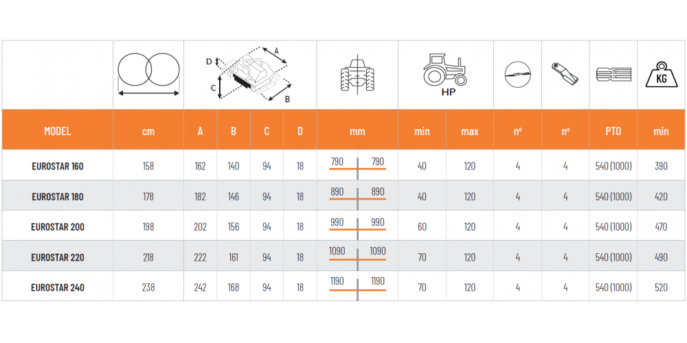 Fix vagy kitolható kivitelű függesztett fűnyíró 160-240cm munkaszélességben. Füves sorközök, szőlő és gyümölcsültetvények sorközeinek fűnyírására alkalmas 40-120 Le teljesítményű traktorokhoz.