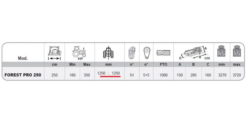 | FOREST PRO 250 | 250 | 180 | 350 |