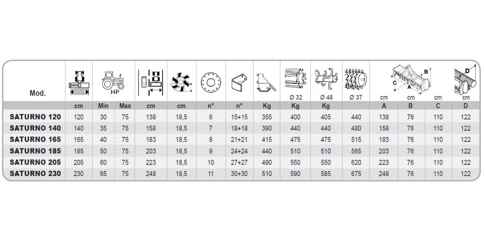 | SATURNO 230 | 230 | 70 | 75 |