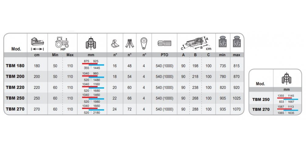 | TBM 250 | 250 | 60 | 110 |