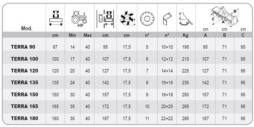 Sokoldalú fix talajmaró kis és közepes teljesítményű traktorokhoz (14-40 Le). Fóliasátrakba, üvegházakba és általános kertészeti felhasználásra ajánlott, valamint gyümölcsös vagy szőlőültetvények sorközeinek kezelésére is. Munkamélység: 17,5 cm.