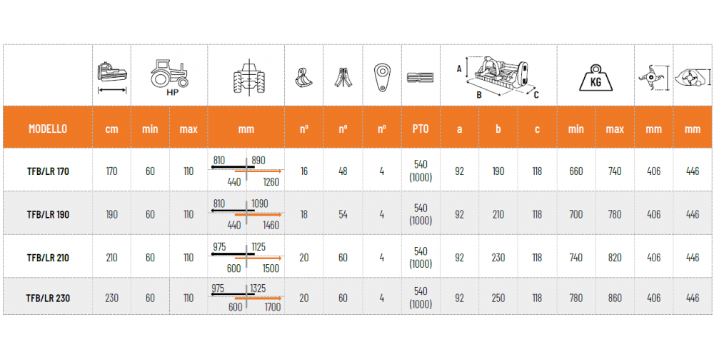 Ez a mulcsozó szőlő- és gyümölcsös művelésére készült, alkalmas fű, bokrok, metszési hulladék és akár 7 cm átmérőjű ágak aprítására. 60-tól 110 lóerőig terjedő teljesítményű traktorokkal használható. A gép különféle sorközművelő eszközökkel is felszerelhető, így rugalmasan alkalmazható eltérő termesztéstechnológiai igényekhez.