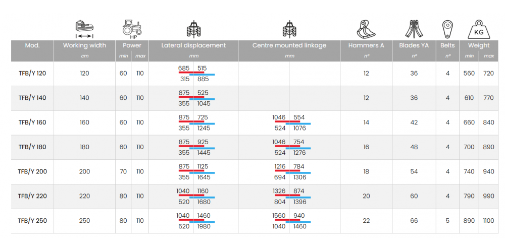 Szőlő és gyümölcsültetvény karbantartására alkalmas szárzúzó, mely 8 cm átmérúőjű ágak, gallyak, venyikék, fás és lágy szárú növények zúzására alkalmas. 60-110 Le teljesítményű traktorral használható, 120-250 cm munkaszélességben.