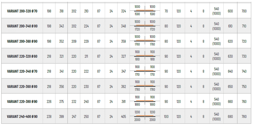 | VARIANT 200-320 (70) | 318 | 70 | 120 |